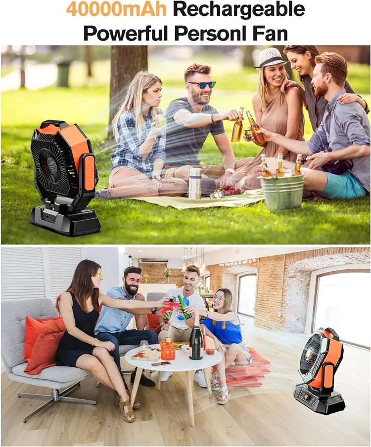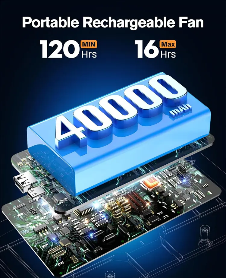 • 40000mAh Long-Lasting Battery: Up to 120 hours on low speed, 16 hours on high—no more frequent charging. Doubles as a phone charger for off-grid days.