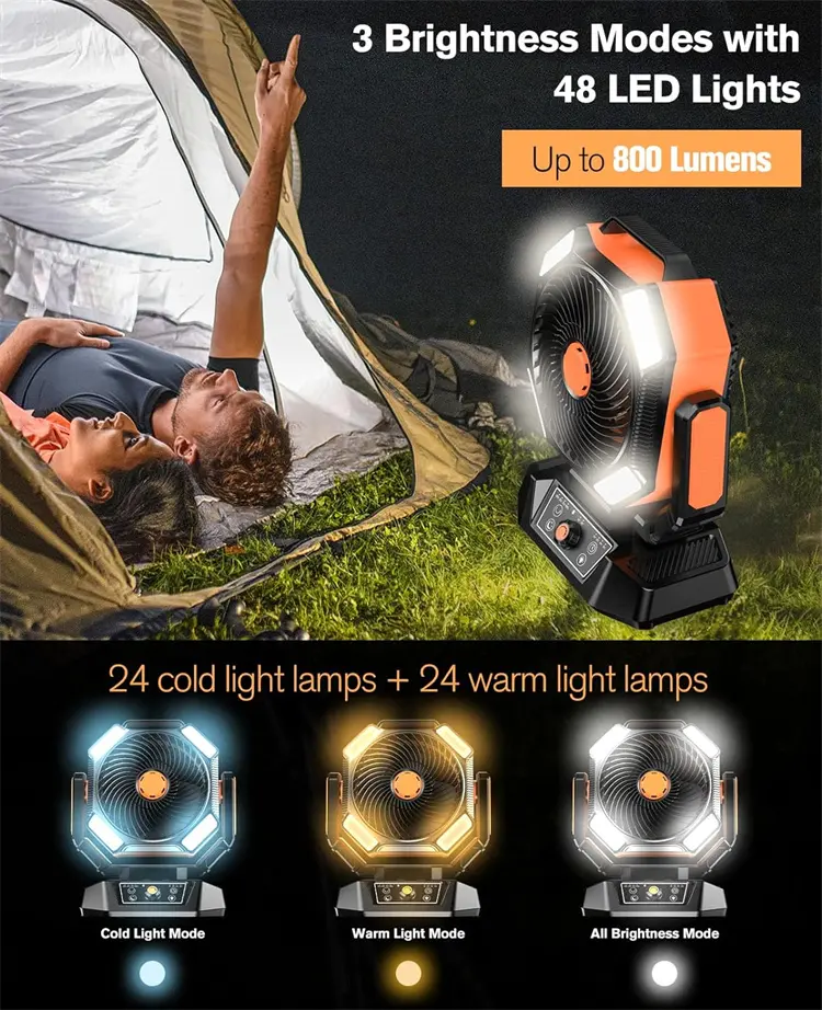 • 48 LED Lights (800 Lumens): 24 cold + 24 warm LEDs with 3 brightness modes—perfect for reading, cooking, or emergency lighting.